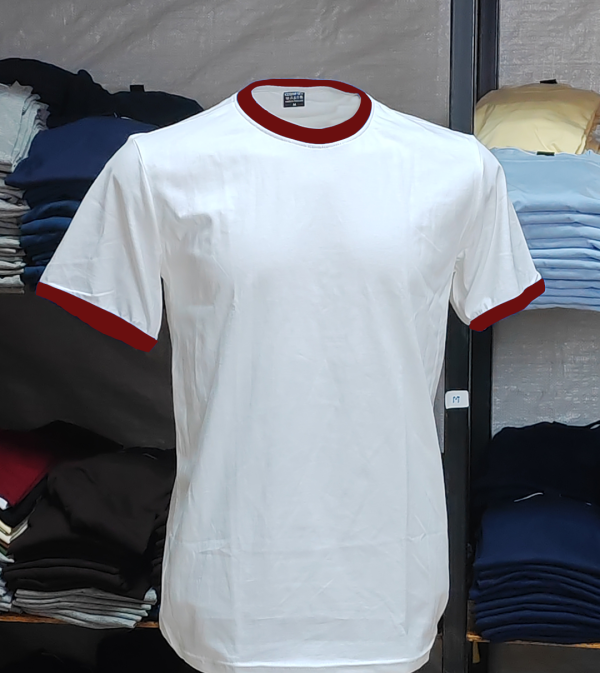 C20117 เสื้อยืดกุ้น ขาวกุ้นเลือดหมู2