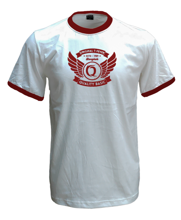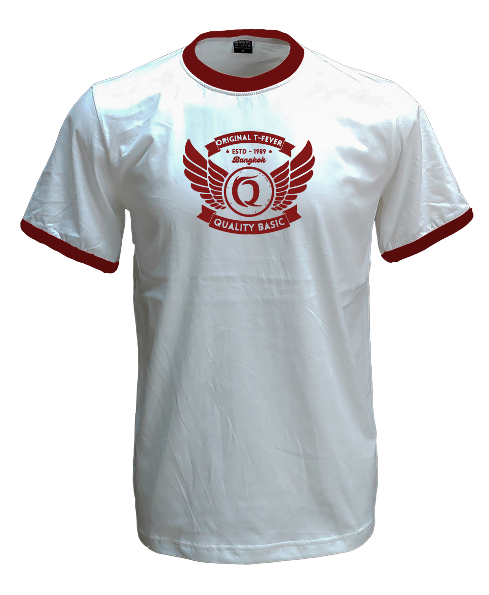 เสื้อยืดสีขาวกุ้นเลือดหมู C20117-5