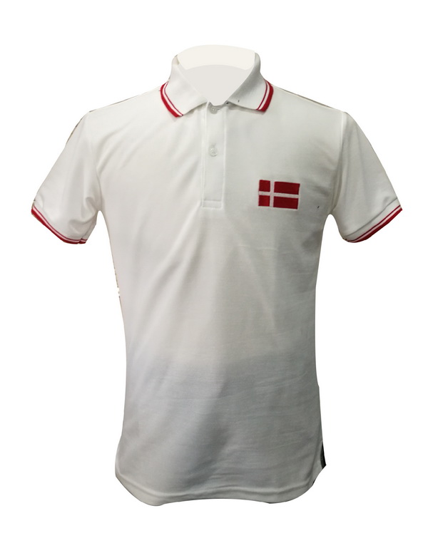 เสื้อโปโลสีขาวขลิบแดง ด้านหน้า