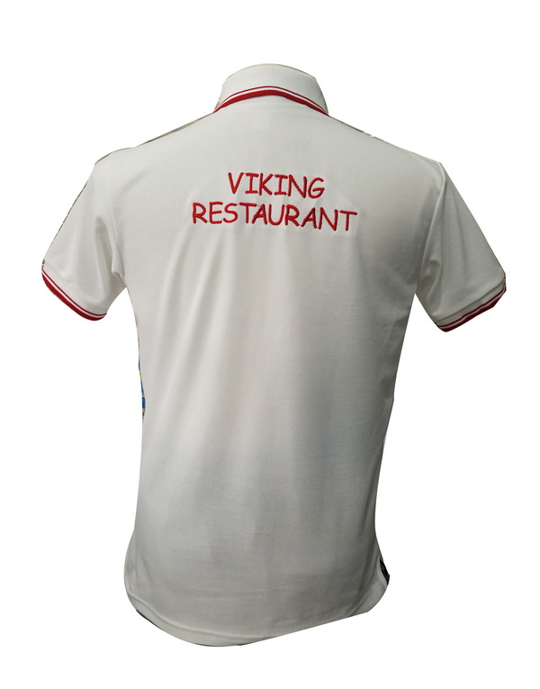 เสื้อโปโลสีขาวขลิบแดง ด้านหลัง